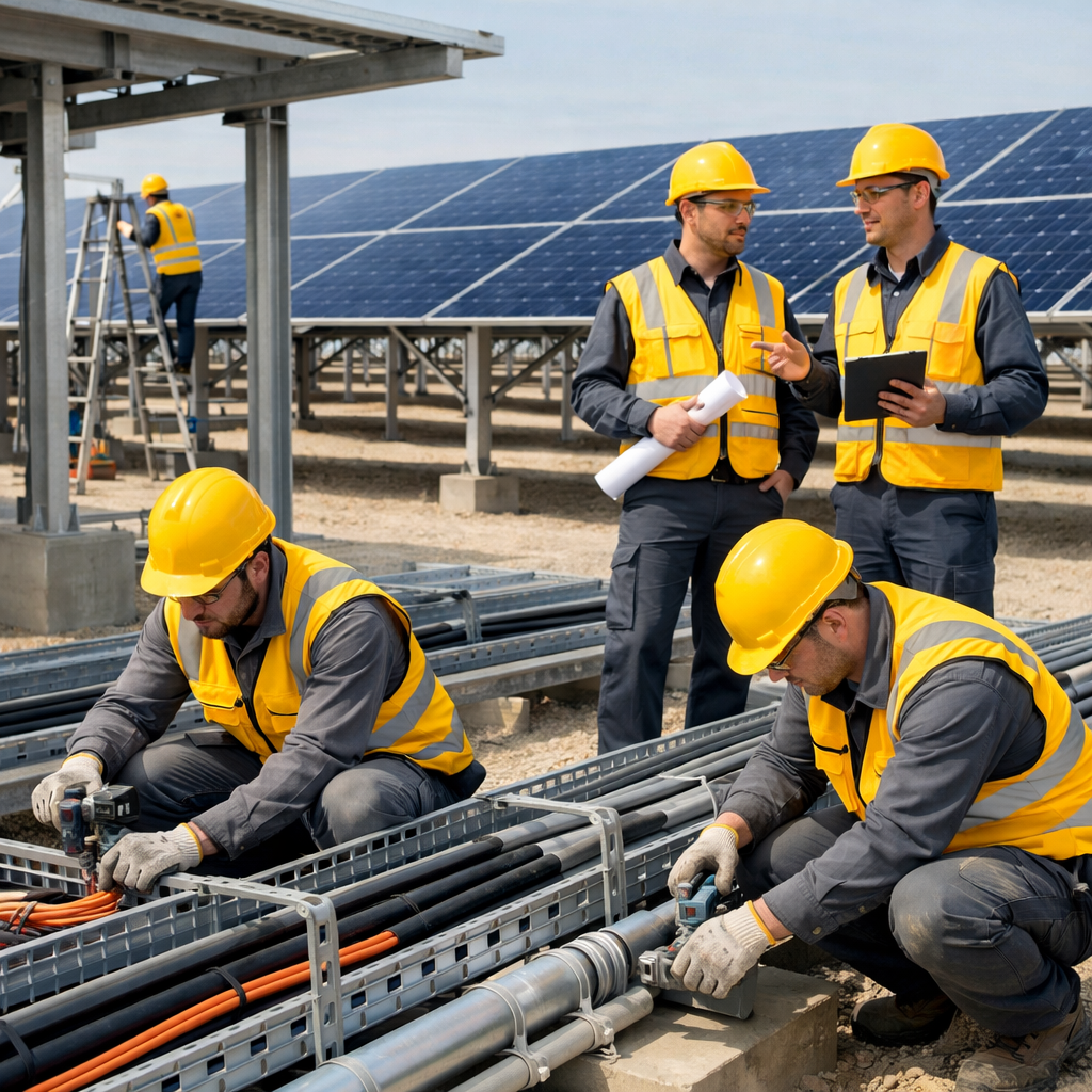 Our teams handle complete electrical and structural installation works required for solar and infrastructure projects.
